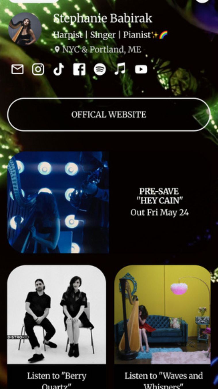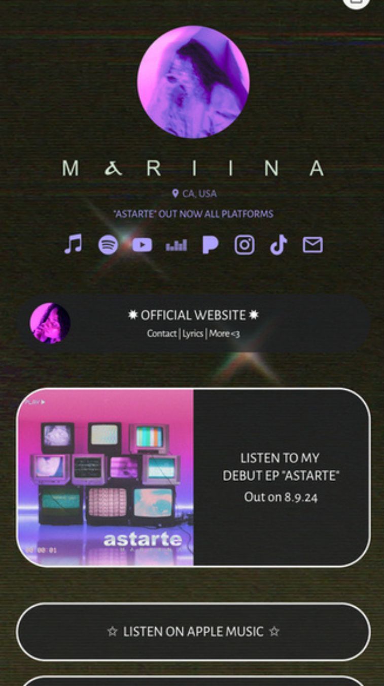 A cohesive, mobile-optimized link hub connecting your music, videos, and socials in one shareable link — perfect for bios, profiles, and marketing campaigns.